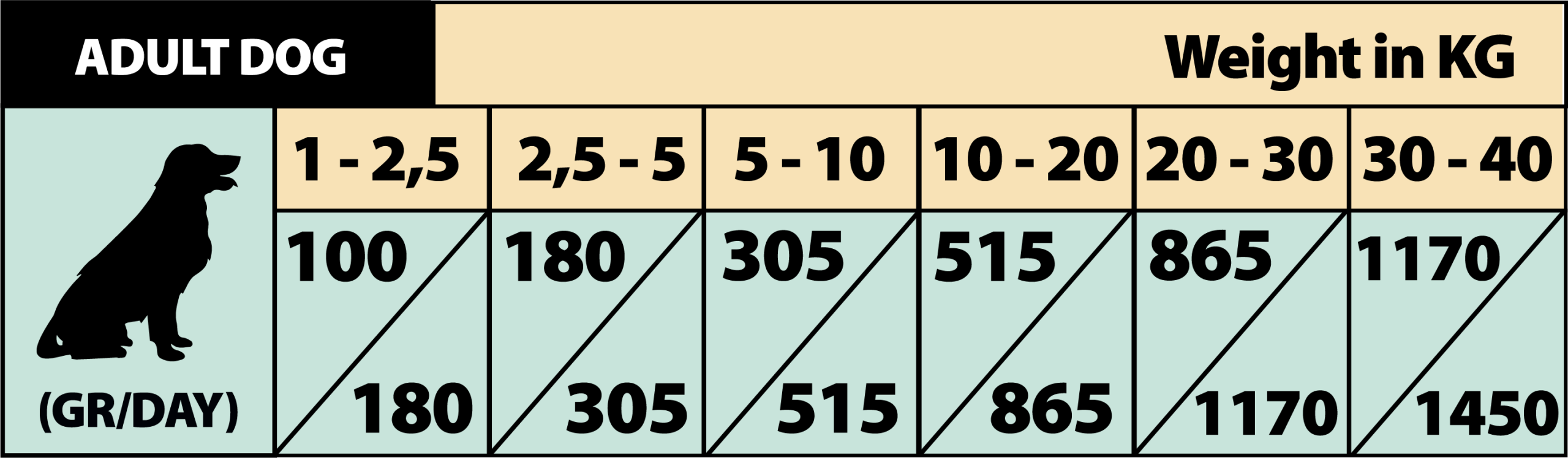 Vær oppmerksom på at doseringstabellen ( på eget bildet eller på produktets emballasje) er veiledende, og at mengden fôr kan variere avhengig av aktivitet, hunderase og miljøforhold.
