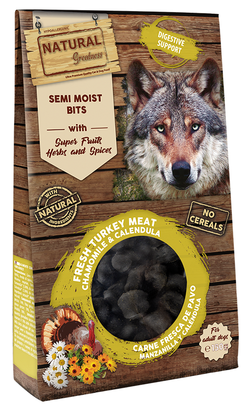Natural Greatness Semi-Moist Bits Digestive er i pose a 150gram.